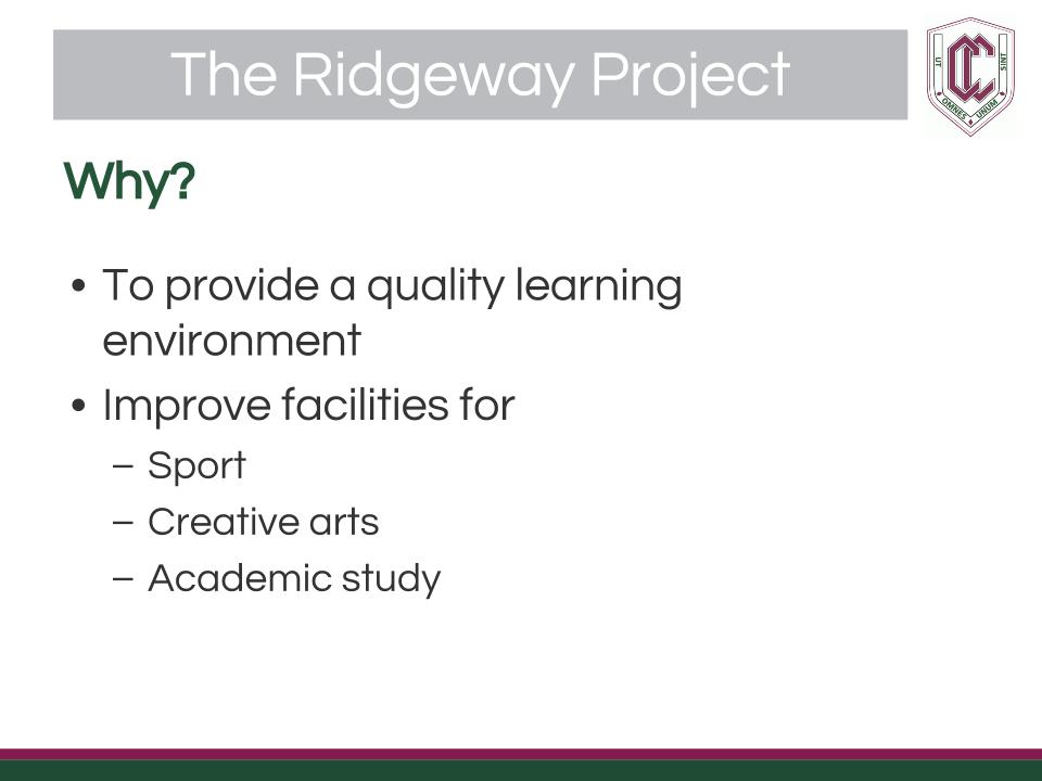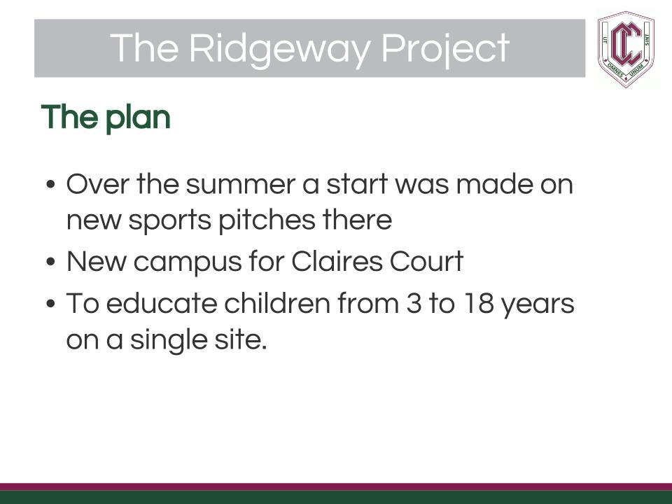 On Friday 22 November 2013, the Principals of Claires Court announced to their staff, and to the Parents and wider community through our Bulletin email ring our intention to develop a new school for Claires Court on the land purchased last year, adjacent to our Junior Boys school at Ridgeway. What follows is a short presentation covering that announcement: