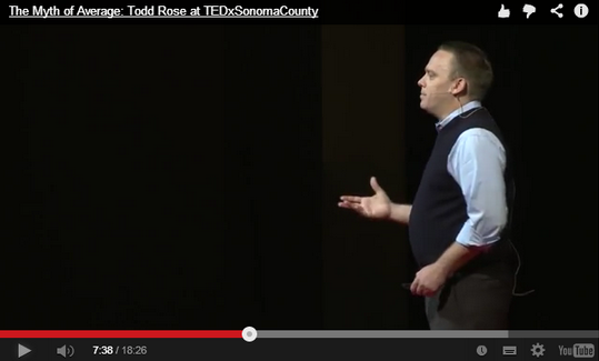 “Todd Rose a High School dropout turned Harvard faculty talks about how a simple new way of thinking helps nurture individual potential. Designing for the Average reaches ZERO students and individuals, we need to personalize learning, adjust learning according to strengths and weaknesses, and Ban the Average. Design to the Edges.”
