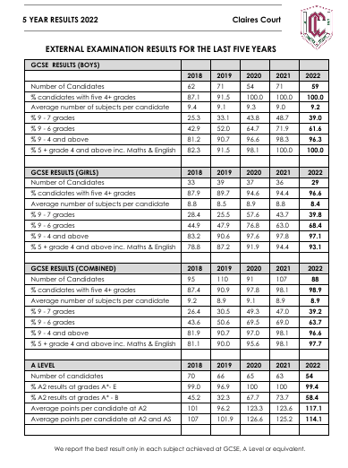 - Claires Court enters the new Carolean era, renewed with the best examination results at both GCSE and A Level achieved through public examinations this century (and ever);