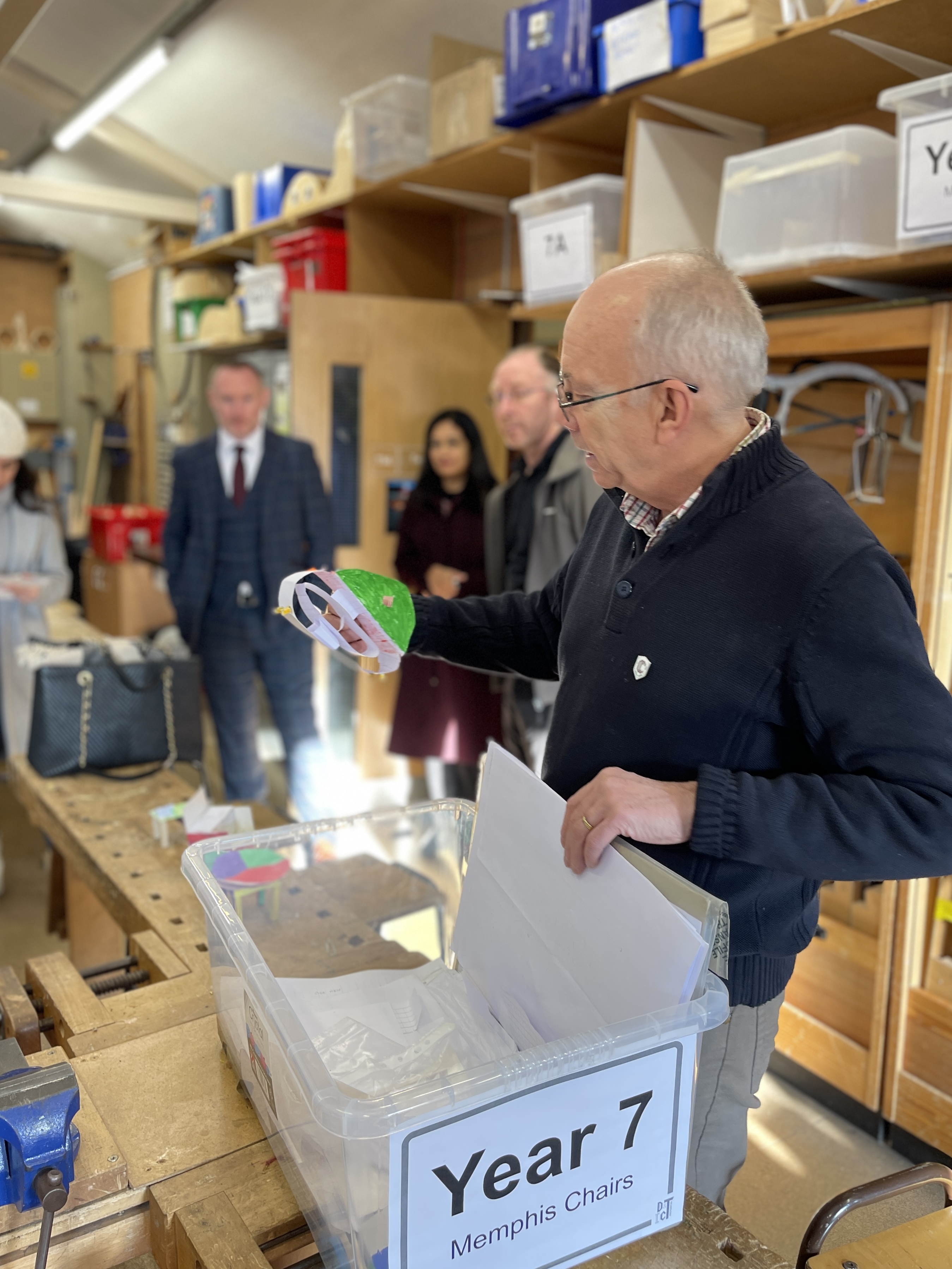 There was no doubt that the Saudi delegation were particularly impressed by the obvious empowerment as sector professionals our teachers are given to ensure children ask questions to explore solutions, rather than ‘receive’ teaching from which their knowledge can be tested. Below shows some great examples of how we do that using Art & Design, from the sheer productivity evident in a year 10 GCSE sketch book, through examples of furniture designed for my office by Year 7 using Memphis Design approach, and demonstrating how workshop practice is an essential element for creating ‘maker spaces’.